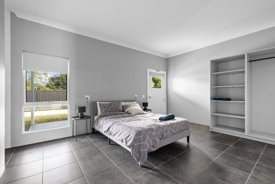 This spacious home features a spacious bedroom with an accessible ensuite, air conditioning, ceiling fan, and built-in robes.