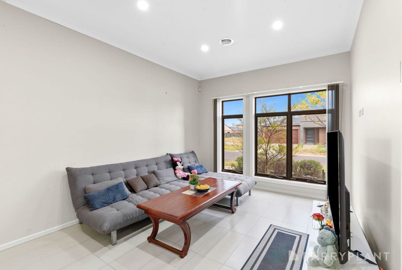 The main living area is open plan, with a comfortable sofa, large screen television, and direct access to a undercover pergola and private back yard.